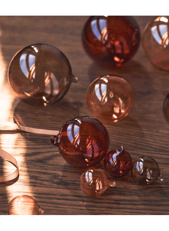 Luid de feestdagen in met deze mix van glazen kerstballen van Ferm Living, subtiel gekleurd en prachtig reflecterend. De delicate ornamenten brengen een elegante en ingetogen sfeer in je kerstdecor, compleet met een lintje om ze op de perfecte hoogte te hangen.