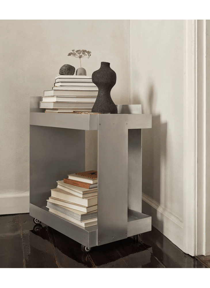 Vernoemd naar het Deense woord voor ‘magazijn’, haalt de Lager Trolley haar inspiratie uit de rauwe, industriële esthetiek van het brutalisme.