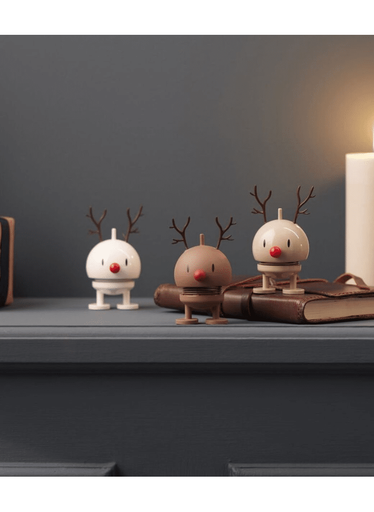 Dit kleine, matte rendier‑vriendje voelt zacht, oogt vriendelijk en brengt pure kerstmagie in huis. Door eenzachte duw begint hij, dankzij een stalen veer, vrolijk te wiebelen — alsof hij je op speelse wijze welkom heet in je interieur. Met zijn vriendelijke rondevormen en minimalistische stijl past hij moeiteloos op een vensterbank,boekenkast of nachtkastje, en voegt hij een knipoog van warmte toe aan jefeestelijke decor.