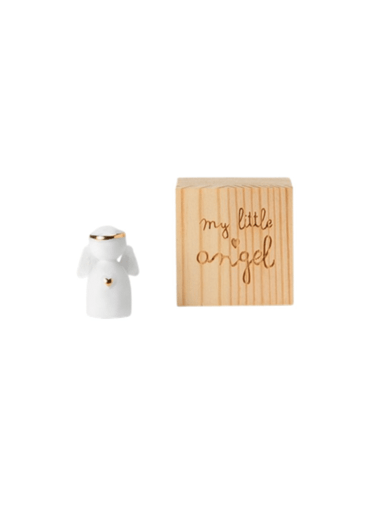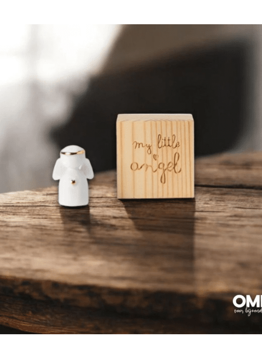 Dit mooie engeltje in porselein wordt geleverd in een houten doosje met gegraveerde opdruk 'My Little Angel'.